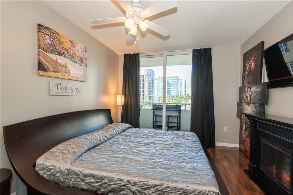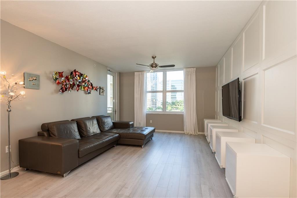 Sit back and watch the boats go by from the private balcony of this 2 bedroom / 2 bathroom residence facing directly north overlooking the New River and zen garden. This home features laminate flooring throughout including both the owner’s suite & guest bedroom/home office. Both bathrooms have been updated with a neutral tile backsplash. The dining area features a clean, white stone accent wall and the living room area features a modern, box design, wood panel accent wall. The kitchen is outfitted with stone countertops & backsplash and modern Italian shaker style cabinetry. Balcony floor is fully tiled. Second bedroom is perfect for a spacious guest room, nursery or home office.