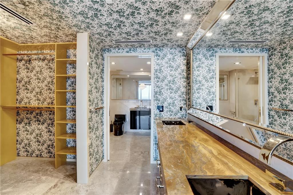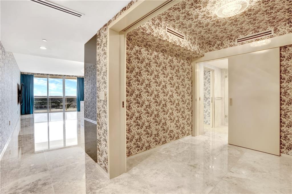 *EXTRAVAGANT GUCCI BEACH CLUB CONDO* This owner has spent lots of time and money, $170.000.- to create a "Gucci Boutique" look and the result is stunning. Custom made sliding doors open up the rooms and the kitchen looks more like a luxury bar with a beautiful marble counter-top. Original Gucci wallpaper, crystal chandeliers and remote controlled silk curtains. Polished brass fixtures, over sized marble floor tiles and vanities are marble as well and bathroom walls. Custom designed closets and a built in Murphy bed. New A/C ,washer, dryer, everything is brand new. Beach Club amenities include valet parking, 3 pools, a 2 story gym overlooking the ocean. Garage parking space right next to elevator and one free valet space. Come admire all the beautiful details this apartment has to offer!