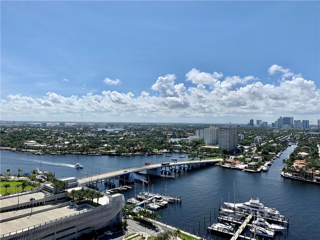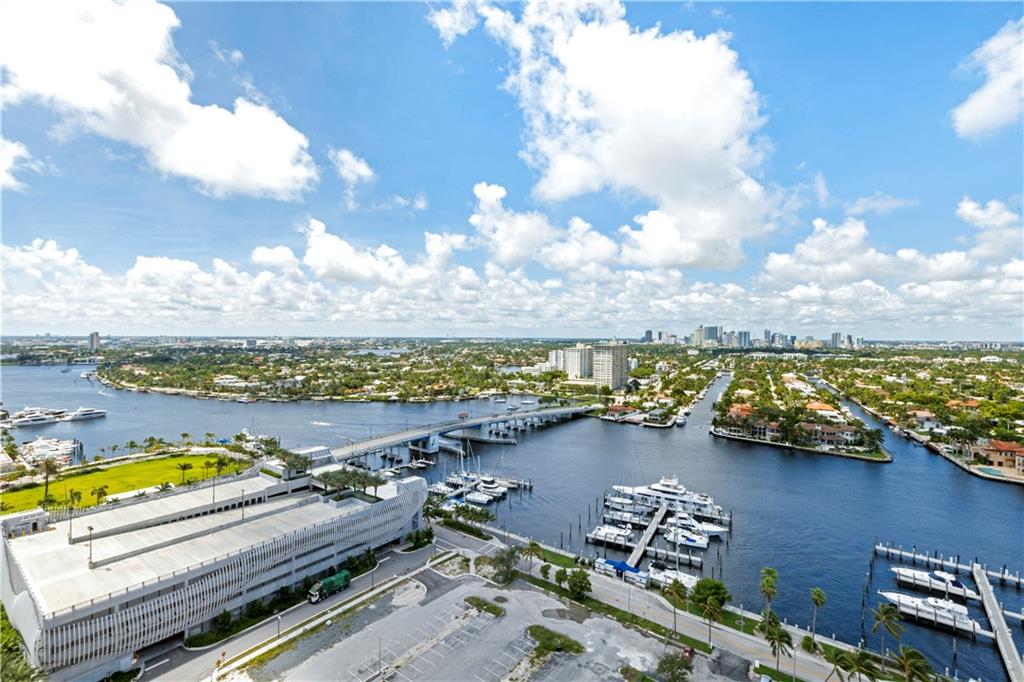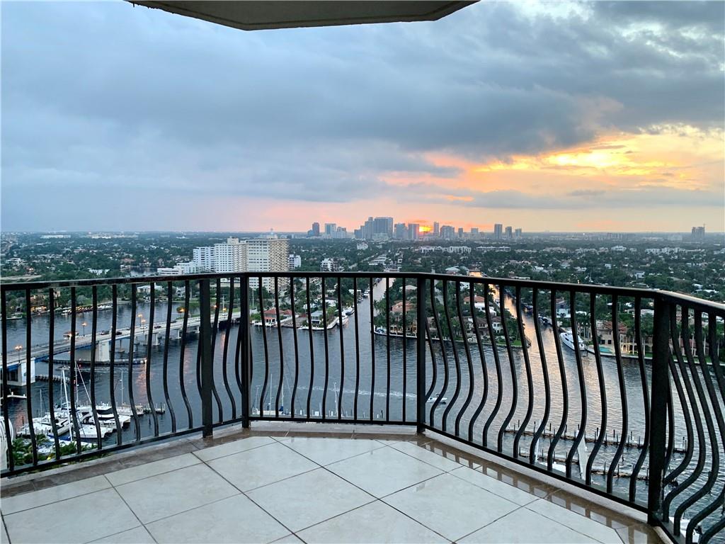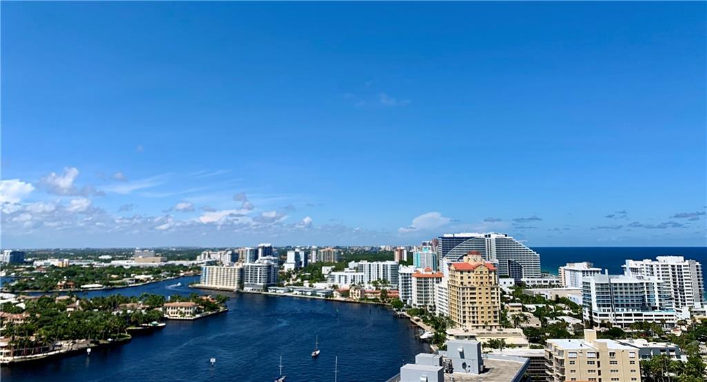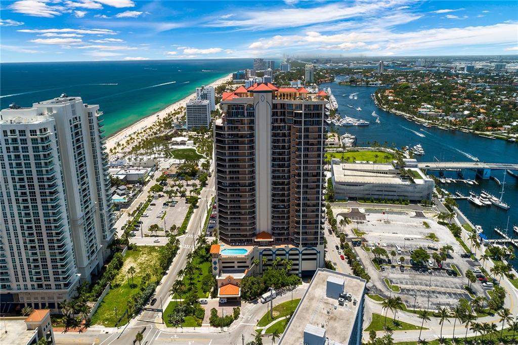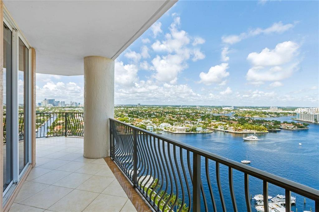 Breathtaking, panoramic and unobstructed views of the ocean, Intracoastal and city of Fort Lauderdale from this high 23rd floor corner residence. Floor-to-ceiling windows with access to an oversized wrap-around terrace great for entertaining and relaxation. Two bedrooms, two bathrooms with a large open kitchen. The guest bedroom has its own private balcony with city and Intracoastal water views. Direct elevator access from garage into a private foyer of the residence. Jackson Tower is located one block from the beach, shops and restaurants, next to Fort Lauderdale city marina with amenities including: 24-hour security, gym, club room, billiards room, heated pool, jacuzzi, steam room, sauna, outdoor grill area and more. Two garage parking spaces are included. Pet friendly.