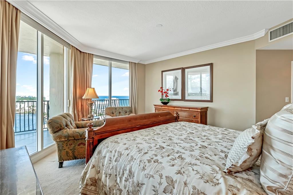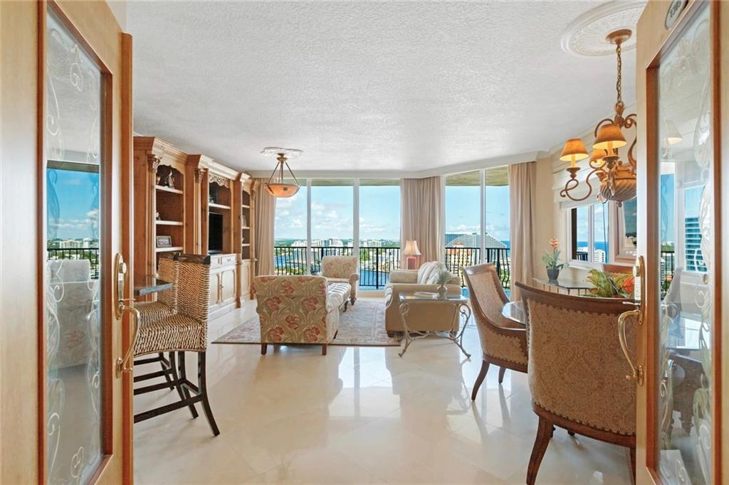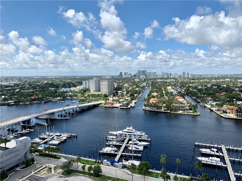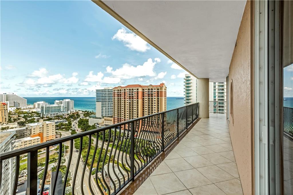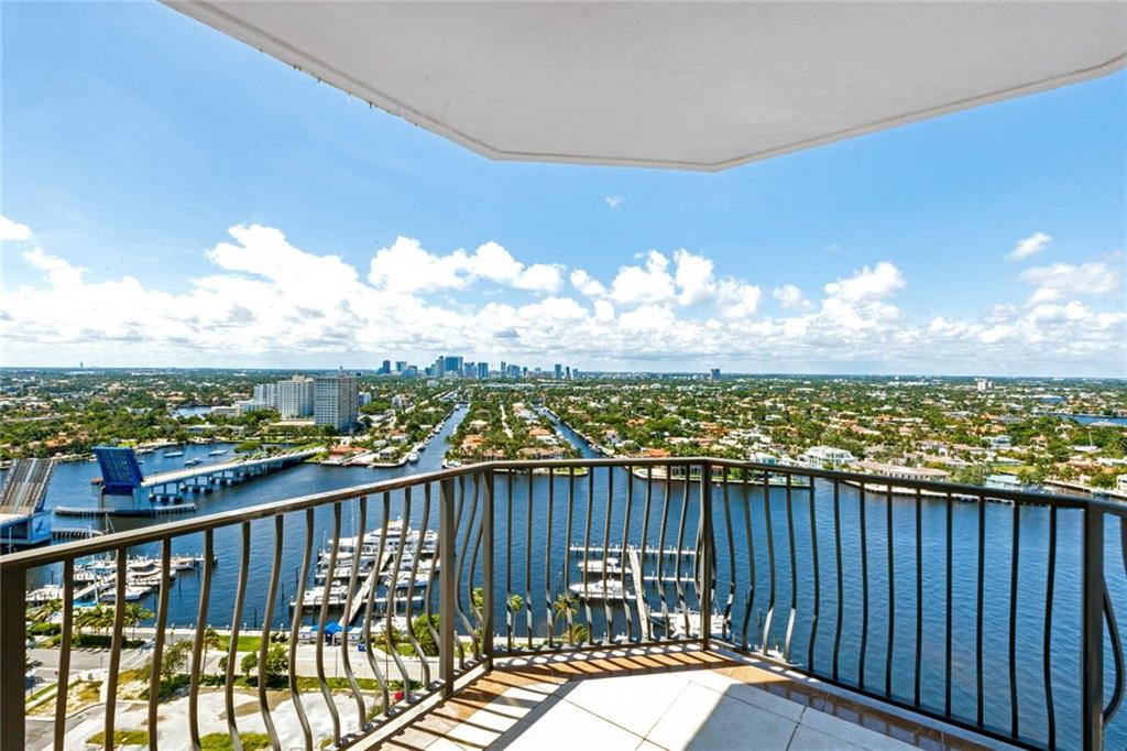Breathtaking, panoramic and unobstructed views of the ocean, Intracoastal and city of Fort Lauderdale from this high 23rd floor corner residence. Floor-to-ceiling windows with access to an oversized wrap-around terrace great for entertaining and relaxation. Two bedrooms, two bathrooms with a large open kitchen. The guest bedroom has its own private balcony with city and Intracoastal water views. Direct elevator access from garage into a private foyer of the residence. Jackson Tower is located one block from the beach, shops and restaurants, next to Fort Lauderdale city marina with amenities including: 24-hour security, gym, club room, billiards room, heated pool, jacuzzi, steam room, sauna, outdoor grill area and more. Two garage parking spaces are included. Pet friendly.