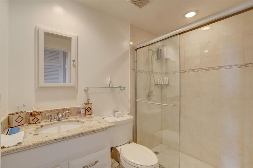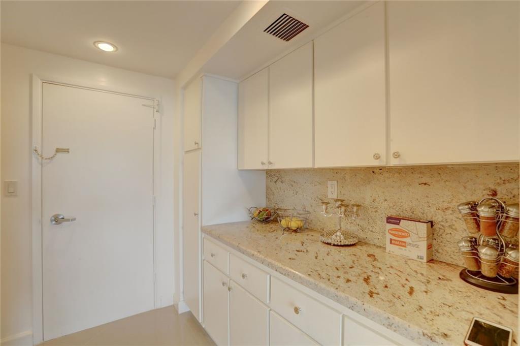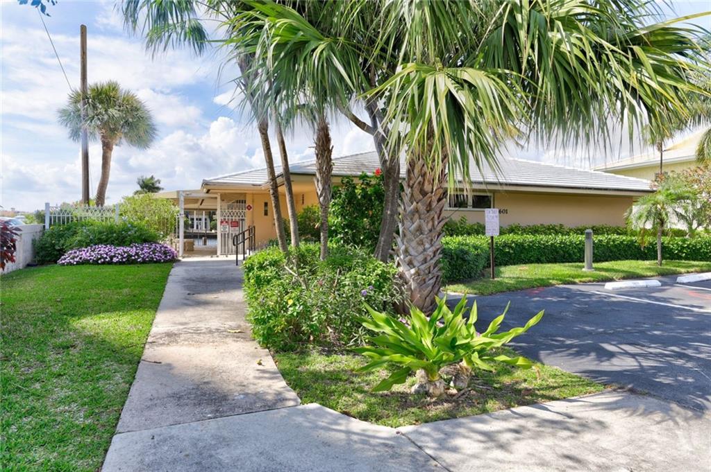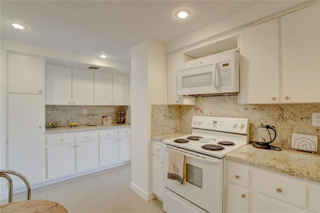 Nicely updated 2 bed, 2 bath with treetop view. New glass balconies being installed & building color will modernize to white with dockside blue trim. Seller pays assessment - you enjoy the benefits. MOVE-IN Ready with porcelain floors, granite kitchen counter tops. MODERN bathrooms, ceiling fans, walk-in MBR closet. Hurricane windows & door. UV blocking shades. Maintenance includes: Fiber optic cable, tv and internet, water, sewer and trash. One block to the beach, restaurants, grocery stores, art galleries and post office. All amenities including heated pool, gym, community room, Intracoastal clubhouse, bocce ball court, shuffleboard court, 24 hour manned security, secured lobby. North facing windows provide low electric bill. 55+ community. Cash only. NO RENTING