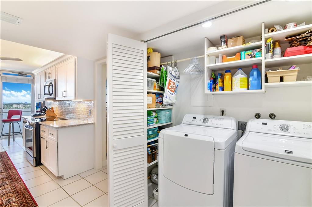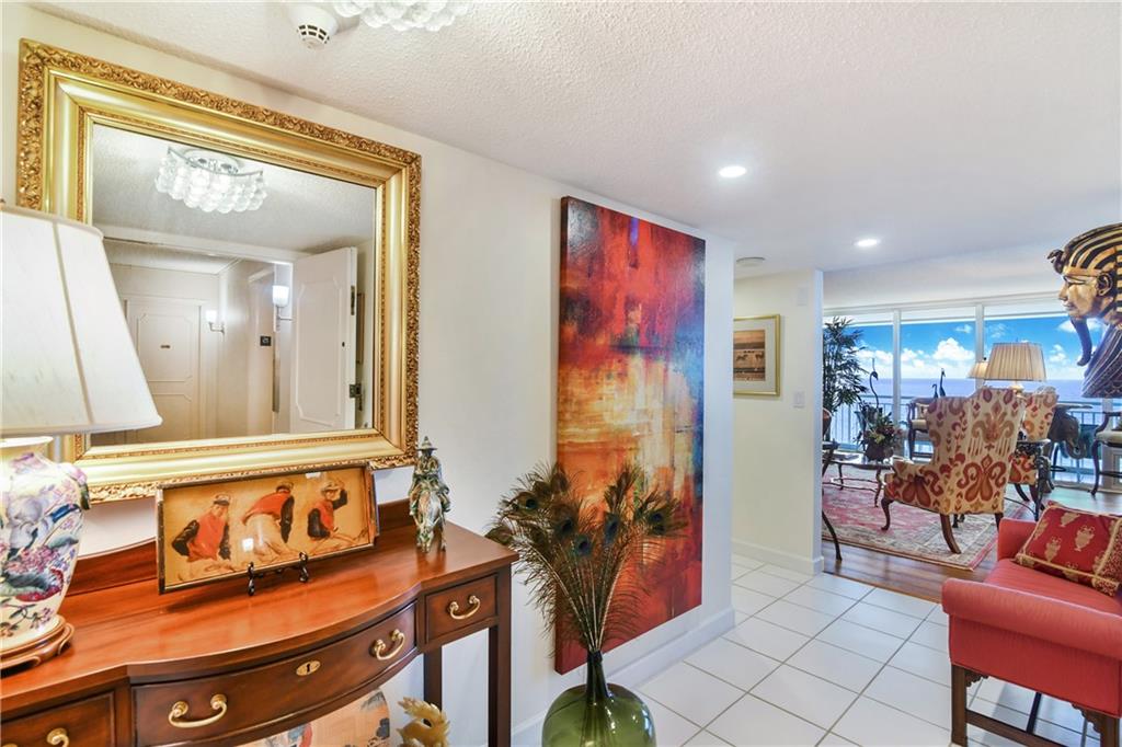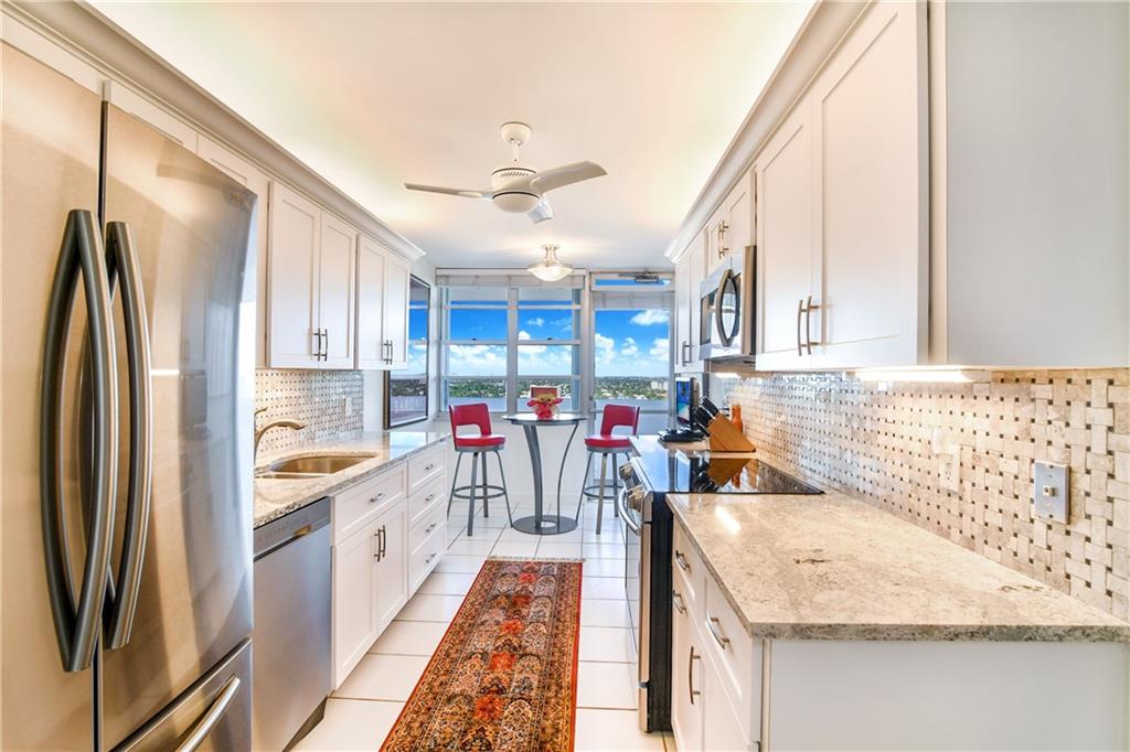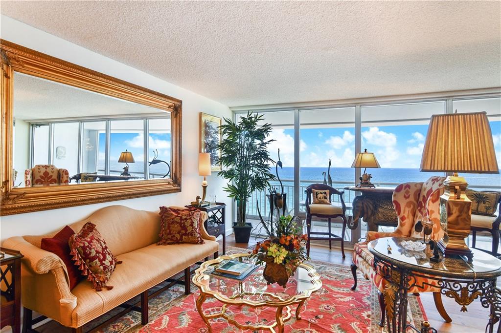 This NEWLY RENOVATED, GORGEOUS, SUB-PENTHOUSE condo has SPECTACULAR OCEAN to INTRACOASTAL VIEWS, almost 2000 SQ FT of LUXURY LIVING, and a HUGE 40FT BALCONY directly ON THE BEACH! Beautifully designed kitchen, CUSTOM CABINETS, NEW Samsung appliances, STUNNING QUARTZ countertops, HUGE PANTRY, and cozy breakfast room overlooking the water! TWO MASTER BEDROOMS...one with morning sunrise views over the OCEAN and one with sunset views over the Intracoastal! Both with newly updated, baths! Separate powder room for guests! Beautiful white tile and HARDWOOD floors! NEW A/C, NEW LED LIGHTING, NEW WATER HEATER AND GARBAGE DISPOSAL! FULL SIZED Washer and Dryer in unit! TWO PRIME PARKING SPACES!! PRIVATE STORAGE UNIT! 24hr security, private garage, HEATED OCEANFRONT POOL, FITNESS CENTER, and MORE!