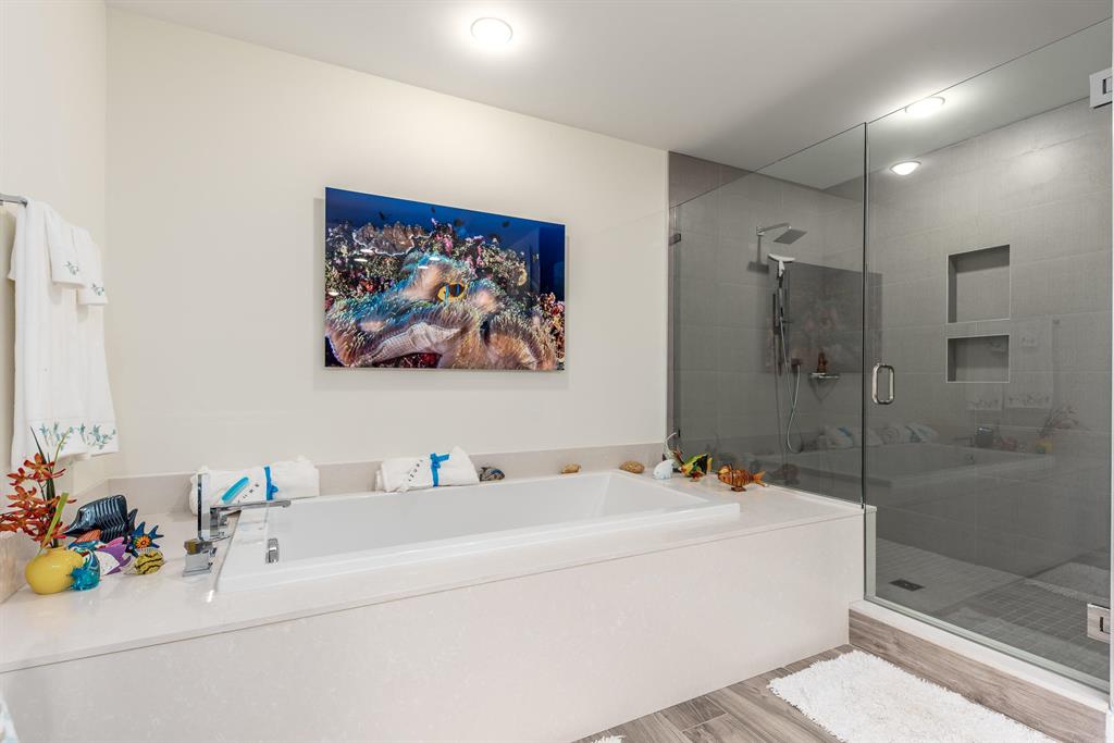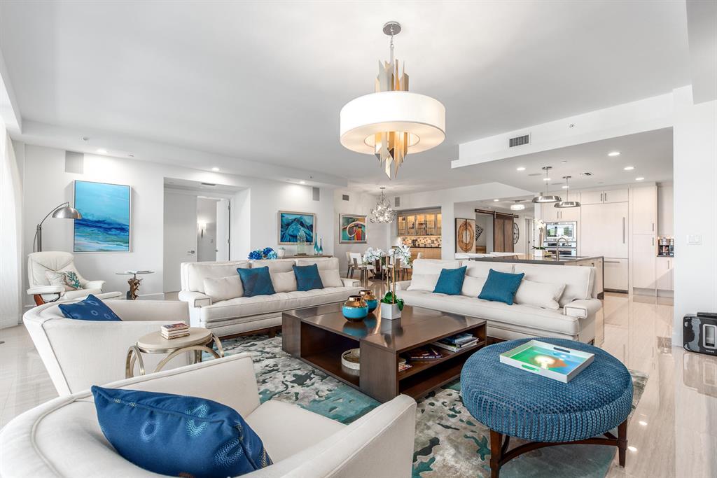 Chic modern residence featuring 4 bedrooms, 3.1 baths, 2 garage parking spots & 3,241 AC SF with best waterfront views in Azure. Newly constructed in 2017, this boutique condominium was built & engineered with the highest quality materials & finest workmanship with strict attention to detail. Other features include 10' ceilings throughout, impact resistant ceiling to floor sliding glass doors & windows for a cool contemporary look & providing lots of natural light, upgraded porcelain tile flooring throughout the entire condominium. The open Island kitchen is beautiful & functional with architectural grade cabinetry, quartz counters, Thermador refrigerator/freezer, 100-bottle built-in