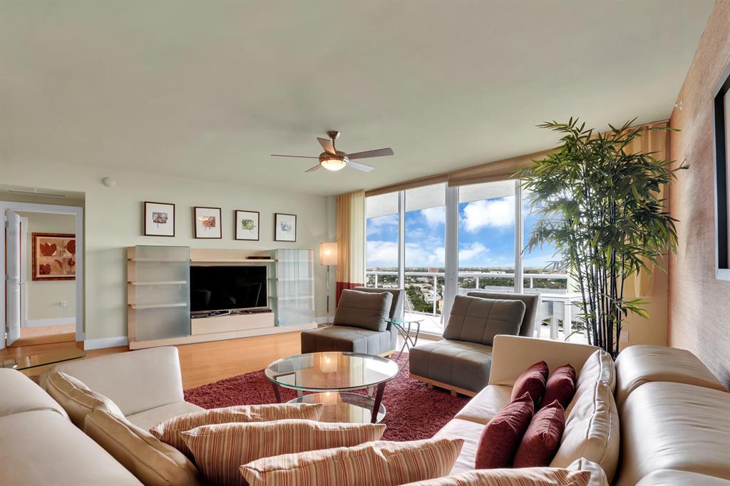SPECTACULAR TWO BEDROOM CONDO WITH A DEN AT THE LUXURIOUS PLAZA AT OCEANSIDE LOCATED ON THE 15TH FLOOR WITH BREATHTAKING INTRACOASTAL AND CITY VIEWS FROM EVERY ROOM. PLENTY OF NATURAL LIGHT AND AN OPEN FLOOR PLAN WITH FLOOR TO CEILING WINDOWS WITH A SPACIOUS OPEN TERRACE FROM THE LIVING ROOM AND THE MASTER SUITE. SOLD TURNKEY WITH GORGEOUS FURNISHINGS AND DECOR DESIGNED BY AN INTERIOR DECORATOR. THE GOURMET KITCHEN HAS EUROPEAN STYLE CABINETRY, VIKING STAINLESS STEEL APPLIANCES AND GRANITE COUNTER TOPS. THE OVERSIZED MASTER SUITE HAS TWO WALK-IN CLOSETS AND THE GUEST SUITE HAS ONE WALK-IN CLOSET WITH A PRIVATE BATH. TWO GARAGE PARKING SPACES AND A LARGE STORAGE UNIT ALSO COMES WITH THE CONDO.