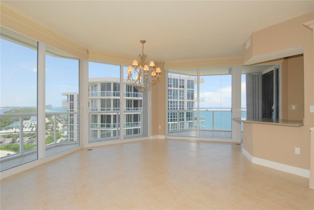 This panoramic circular corner unit with wrap terrace has 10ft ceilings & walls of glass allowing one to blend with the environment & the sky having crystal clear & multiple vantage views of the Ocean, intracoastal & city of Ft. Lauderdale. With 3 bedrooms & 3 bathrooms it's spacious & airy. The 3rd bedroom has built ins easily offering use as an office. Shutters are included. Conveniently & closely connected to Las Olas, the airport, the port, theatres, restaurants’, multiple casinos & nearby race tracks, it allows for ease of activity, or if preferred sought after privacy. Complex is pristine with many upgrades including two pools, two gyms, tennis courts, common area rooms, bbq & parklike spaces. An owner’s only bistro completes the easy & luxurious lifestyle. Two pets allowed.