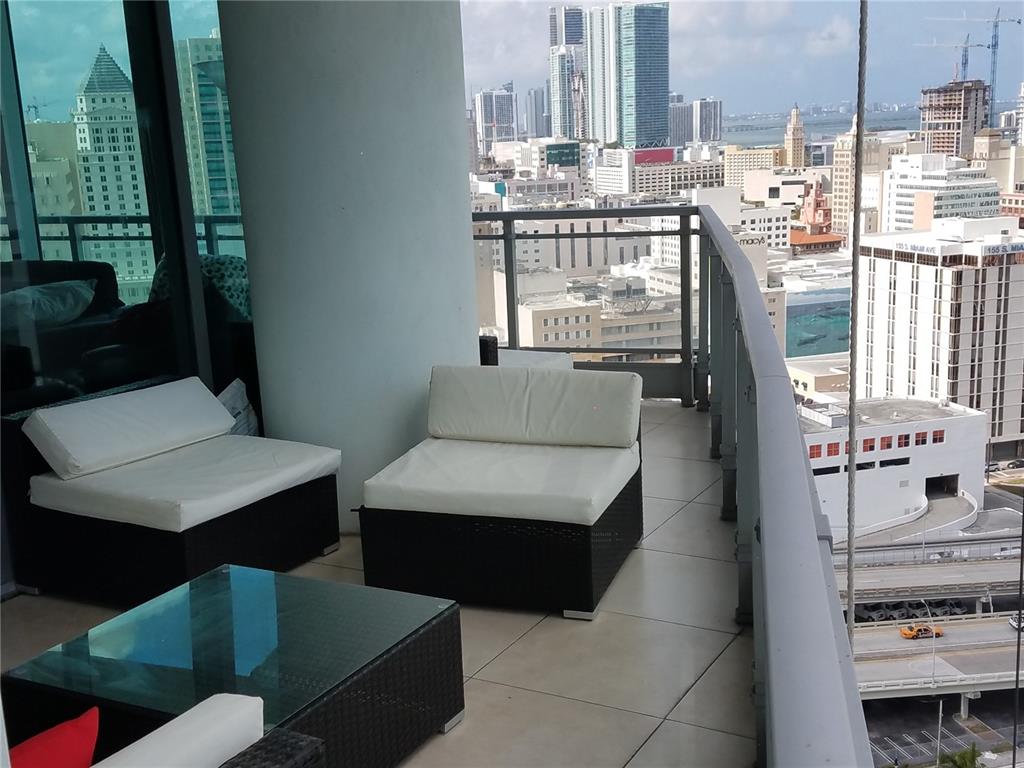High floor rare Corner unit 2 bedroom 2.5 bathroom unit with wrap around balcony and breathtaking views of the bay, Miami River, Brickell skyline, downtown skyline, and Marlins stadium! Real bamboo wood floors throughout, open kitchen, panoramic views from floor to ceiling sliding glass doors all around the living area, and split bedroom floor plan. Full size washer and dryer in unit, and walk in closet in the large master bedroom.
