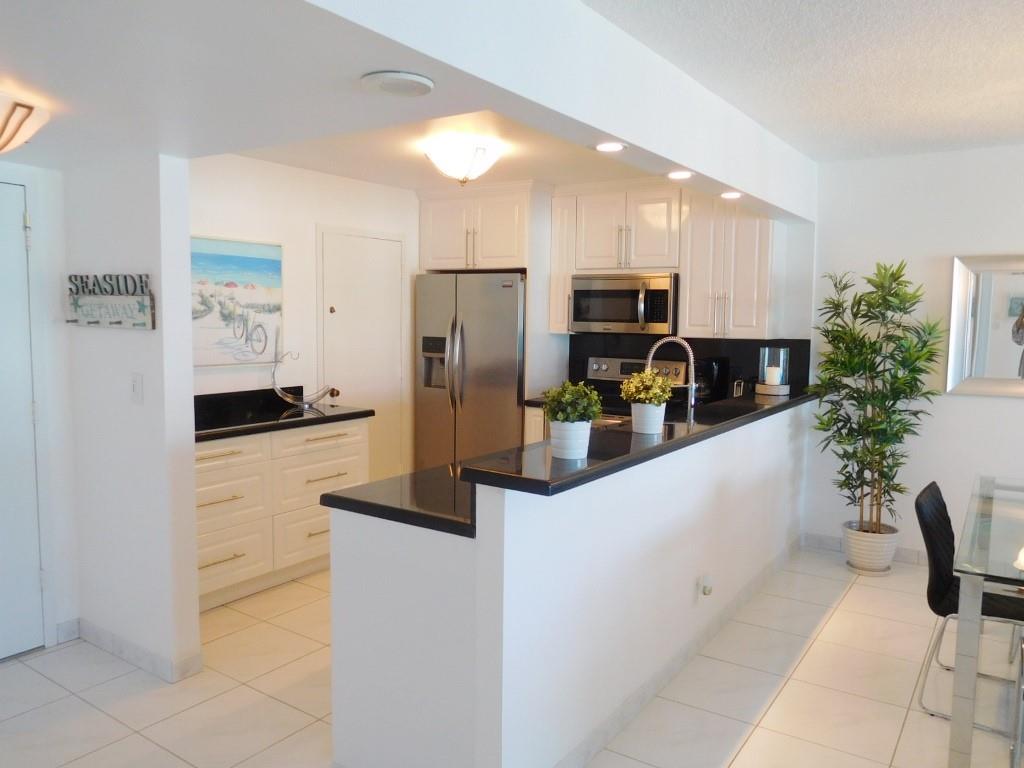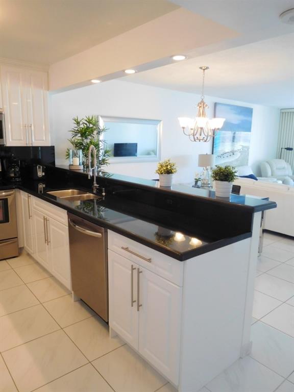 Facing Direct East. BEST VIEW FOR SALE AT THIS TIME. Morning Sun + Coffee + Ocean view = HEAVEN. Substantially & Totally Remodeled with class. Furnished/Turnkey. ALL NEW HURRICANE/IMPACT WINDOWS & DOORS. Open Kitchen, Granite, Top of the line SS Appliances, Recessed Lighting, Dual sinks. Ceramic Thru out. Both Bathrooms 100% New with high end plumbing / Shower fixtures, tasteful ceramic on walls, Vanities, Lighting, etc, Simply put JUST GORGEOUS. WI-FI, Cable, 24/7 Security, Gym, Heated Pool on Intracoastal, BBQ, Billiards, Sauna, Card Room, Valet & Shuffleboard are all included in this low maintenance fee of $559. ALL ASSESSMENTS ARE PAID. Across from Ocean. Near shopping, Bus, Casinos, Airport. Building also has their own Community/Shuttle Bus. Rent right away. A MUST SEE.