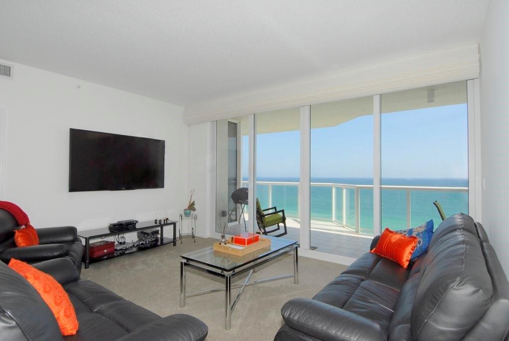 Beautiful, light, airy, direct ocean front residence in luxury high rise w-full services & amenities featuring direct ocean access, 2 heated pools, tennis courts, gyms, spas, party rooms & cafe. Enjoy ocean views through high walls of glass from all rooms. Large ocean front balcony spans entire unit. Open floor plan to kitchen w-breakfast bar, den, dining & living areas. 2 split plan bedrms & 2 bathrms. Master onsuite w-dual vanities, Jacuzzi tub & separate shower. Unit W/D. New AC w-Smartphone access.