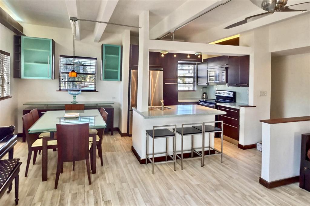 The heart of South Beach. Walk to everything. Comes with covered parking spot. Natural light filled condo features Italian kitchen & bathroom cabinetry, German flooring throughout and plenty of custom closets and storage space. Washer/dryer inside the unit. Pet-friendly, all ages building, rent right away, twice a year. This corner unit, top floor, very large colorful mosaic wrap-around balcony with unobstructed views of South Beach's historic district,downtown Miami, partial ocean, sunrises. This beautiful condo is located just 3 blks from the beach, in a quiet, low rise building. The building is in the process of a total upgrade renovation. New Roof and Elevator just installed. In process: exterior paint, lighting & landscaping. All building upgrades are paid by the seller. Low HOA fee.