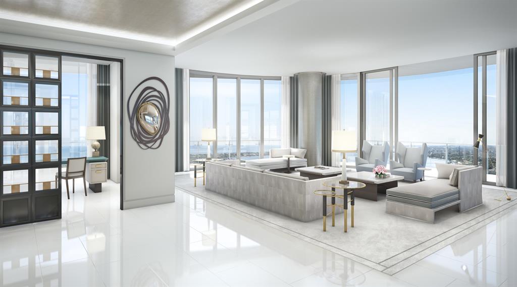 25 Story Iconic, NEW Construction Luxury Building.Full Service, 24 hour Concierge, 2 spas w/steam, sauna, locker rooms, 2 massage stations, fitness center, 75ft. pool & jacuzzi, conference room, admin. Center, Beauty Salon. Inside & Outside Dog walk.Dog Groomer and Car Wash in Garage.Full Generator + Diesel back up generator for entire building.Beautiful, 3 bedroom 3.5 bath + library/den. with direct water views from Master bedroom, kitchen, living dining and family rooms.White diamond marble floors throughout. Sneidero Cabinetry, with Calacatta marble counters. Appliances Gaggenau, double wall ovens, microwave,coffee maker, 2 dishwashers 5 gas burner stove + induction cooktop. Sub Zero 100 wine cooler + 4 refrigerator drawers.