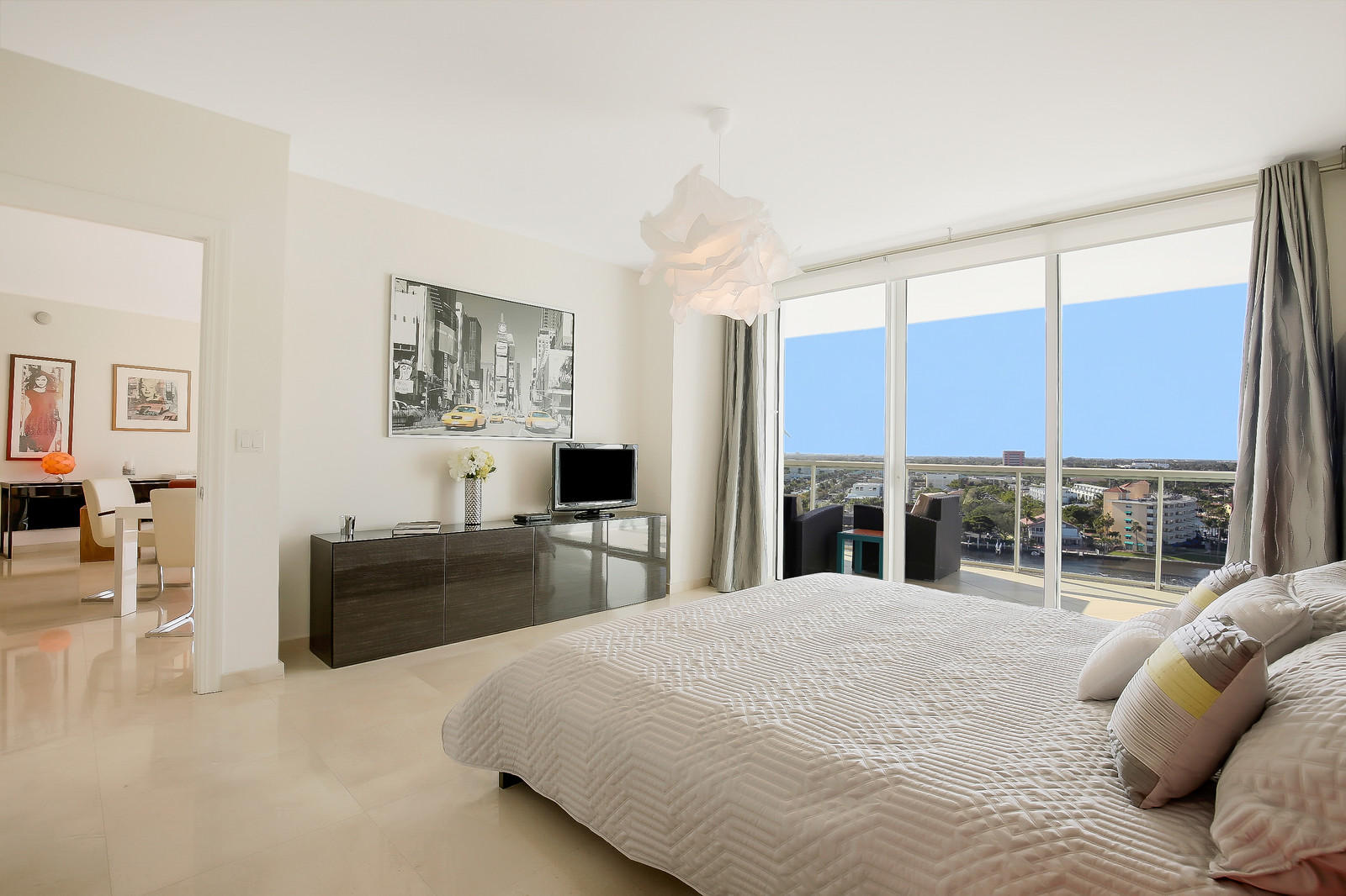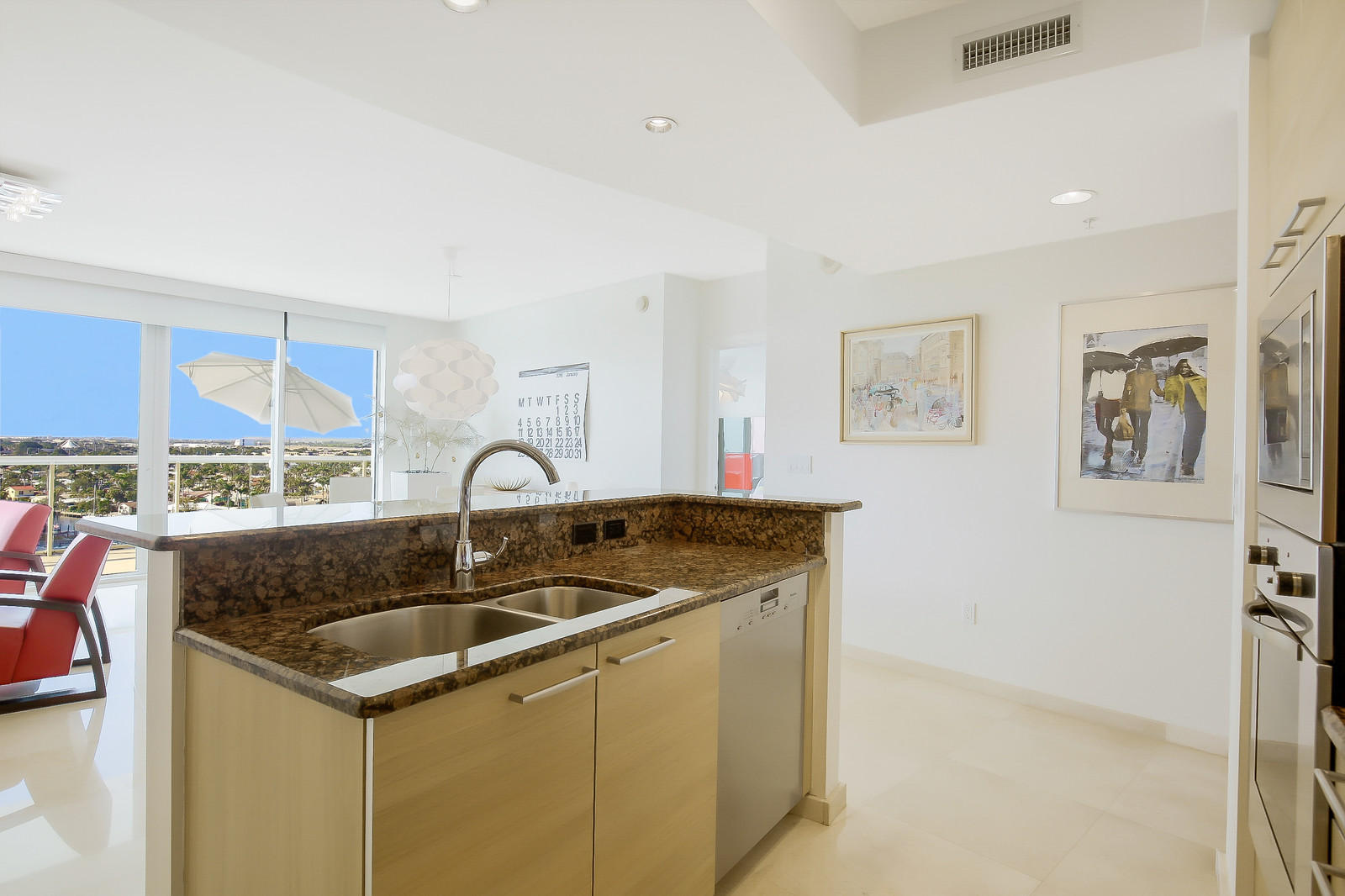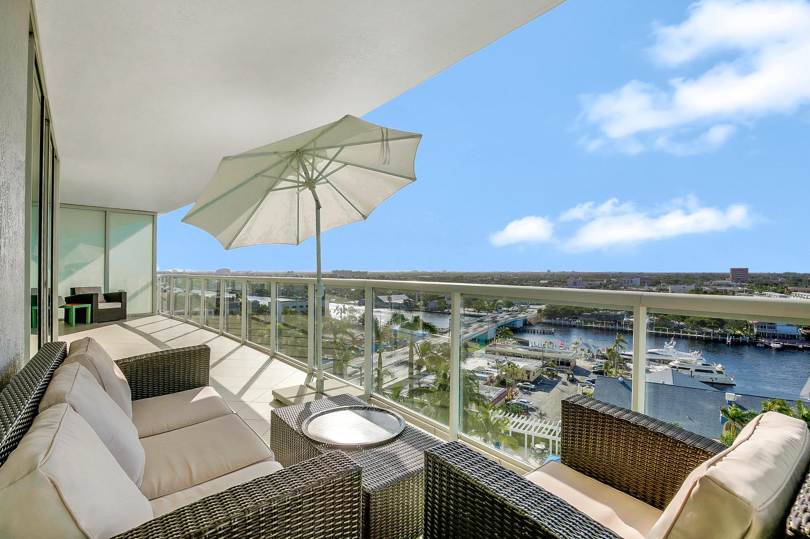 Welcome to the Plaza at Oceanside ! Luxury Lifestyle with Gorgeous Intracoastal/Marina/City and Sunset Views ! This immaculate 2 bdrm/2 bath split design sky residence features an open floor plan and floor to ceiling impact glass sliders from every room to the huge terrace. The entry foyer opens into living and dining areas which capture the beautiful panoramic view. The European designer kitchen features granite countertops, Poggenpohl European cabinetry and Viking and Miele s.s. appliances. The expansive master suite opens to the terrace, has two large walk-in closets and a luxurious bathroom with Jacuzzi tub, separate shower and two-sink vanity. The guest suite to the left of the main salon has a walk-in closet and full bath. This beautiful intracoastal residence features 24x24 Polish