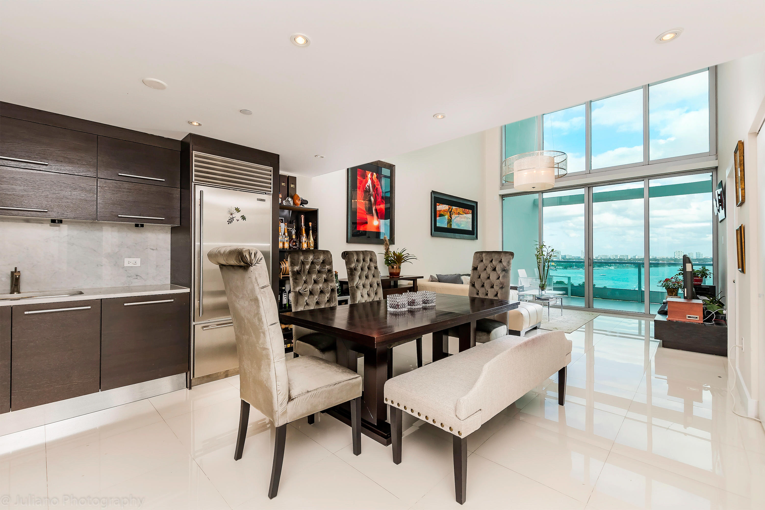 Breath taking views of the bay from this 3 Beds 1 Den 3 Bathrooms townhome/condo! Automated lighting and blackouts.Featuring over 20 ft high living room ceiling, porcelain flooring throughout. SS Miele appliances, SubZero ref and Italian cabinetry.Owner closed 1st floor den to turn it into an office. Full Amenities: more than 20,000 ft. of recreation deck with views of the bay, heated pool, spa, yoga & aerobics studio, locker room, sauna, gym, 24 hr valet, concierge service & much more. Motivated seller!