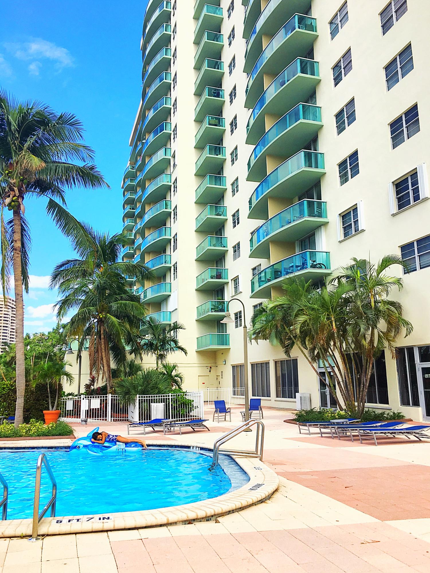 Amazing Intercostal Views! Renovated large 1 bedroom 1.5 bath condo in Oceanview building A located on the intercoastal. Totally redone modern open kitchen with new stainless steel appliances & granite countertops. The room overlooks a great room that looks out to a balcony with spectacular views of the city and inter-coastal waterways. Master bedroom suite has both his and hers walk in closets and large bath. building includes security ,totally renovated lobby, gym, clubhouse and a beautiful resort style pool. walk across the street to beaches. Easy to show.