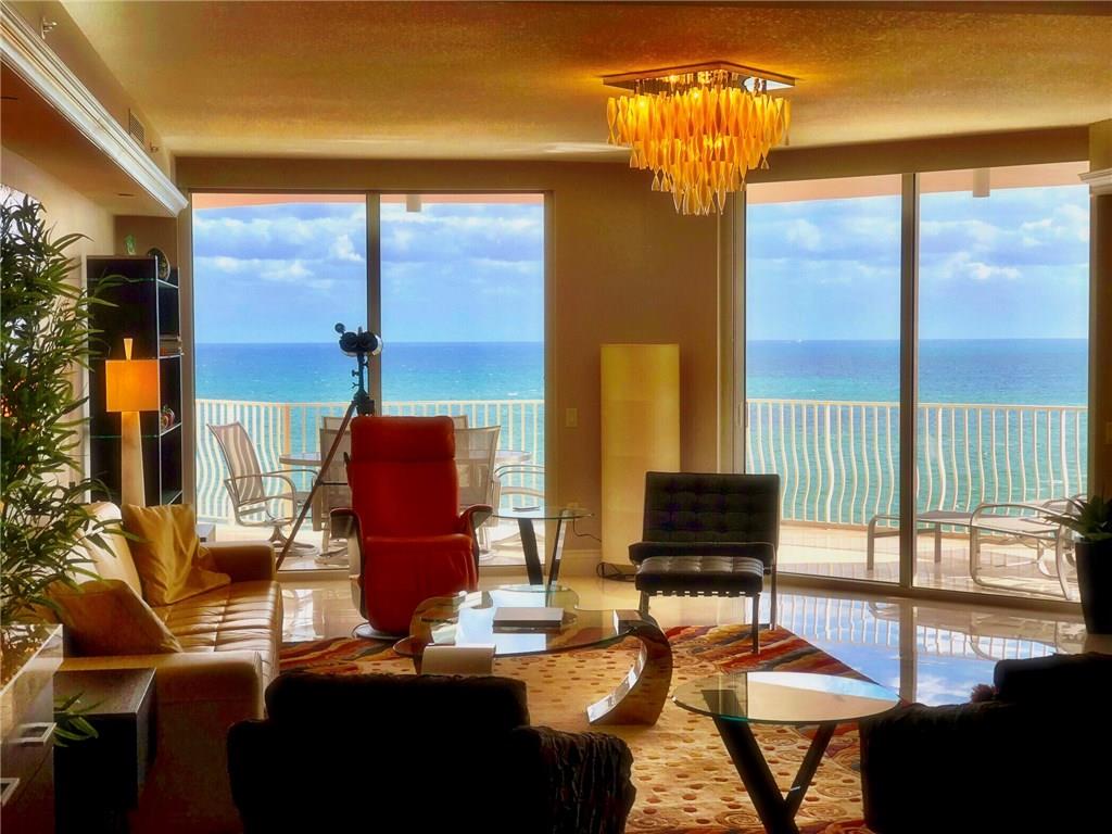 Spectacular Ocean and Intracoastal Waterway views from this spacious Condo with 3 expansive balconies. Large open living room, Master bedroom with forever ocean views, 2 Guest Rooms Ensuite, Family Room, Office/4th Bedroom. Polished Marble floors, Wood floors in Master, Closet Cabinetry, Floor-to-ceiling window w/electric shades, Custom lighted onyx Bar, Sound System, Miele Appliances, Semi-private elevator w/foyer & double door entry. 2 side-by-side parking spaces & storage unit. Pet Friendly Bldg.