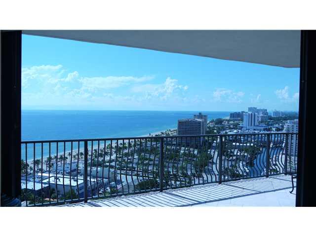 Breathtaking views of the ocean, Intracoastal and Miami from the 21st floor of this SE corner unit. One block from the beach, Intracoastal,restaurant and shops. This spacious 2 Bedroom + Den, 2.5 Bath unit has a HUGE wraparound balcony, open kitchen/livi ng room plan and private foyer. Luxury full-service bldg offers valet, concierge, 24-hour security. Two pets any size welcome.