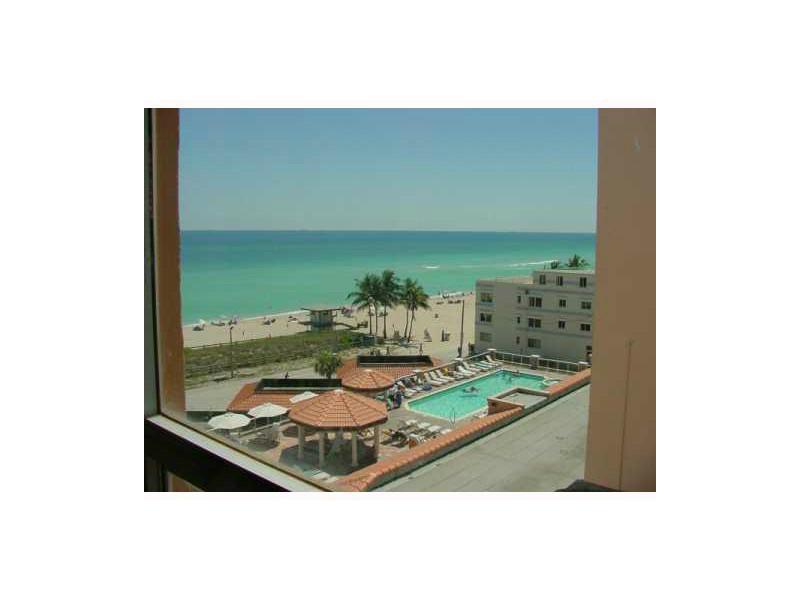 This is an efficiency studio (furnished) located right on the oean...bring lounge chair and be right on the beach as you exit the elevator. NOT a direct ocean view from the unit (see picture). This is a full amenity complex that includes Valet,manned sec urity, gym, Entertainment Bars, restaurant, pool, and much much more. ULIMITED rental restriction throughout the year, daily, weekly, or monthly. Owner finanacing with 50% down.