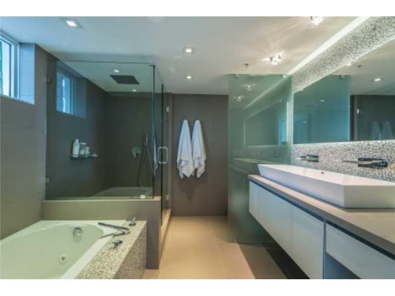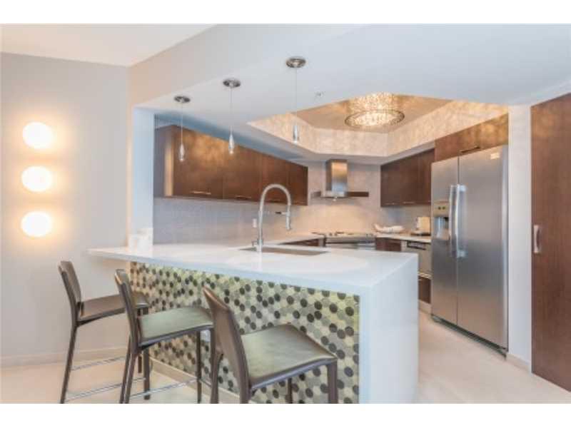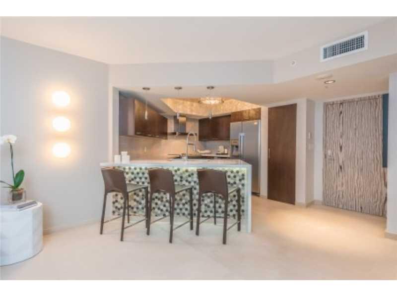 Unit has been fully remodel by an Interior Designer transforming developer basics in to a South Beach dream unit. Stone floor, new impact sliding doors, motorized window treatments, beautiful bathrooms, italian kitchen and more. New A/C unit.