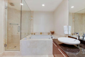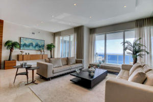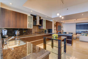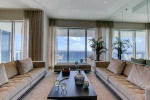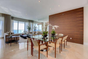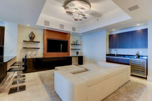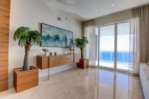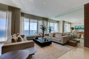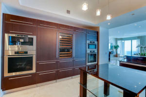 Spectacular designer decorated FURNISHED, 3 Bedroom, 3.5 Baths apartment on the 33rd floor with 10' ceilings! The most coveted line in the whole building. This Flow-trough floor plan with amazing views of the Ocean and the City, has the most advantageous exposure to the sun. Elegant Italian designer furniture and chandeliers, recessed lighting throughout the house, 48" x 48" Imperial Cream Marble in all the common areas and hard wood flooring in all the bedrooms. Wake up to a delicious cup of coffee on your built-in Nespresso cappuccino maker and cook delicious meals on the Miele stainless steel appliances. State of the art surround sound & audio system with wi-fi capabilities that let you watch your favorite Blue-Ray DVD in the family room and the bar at the same time.