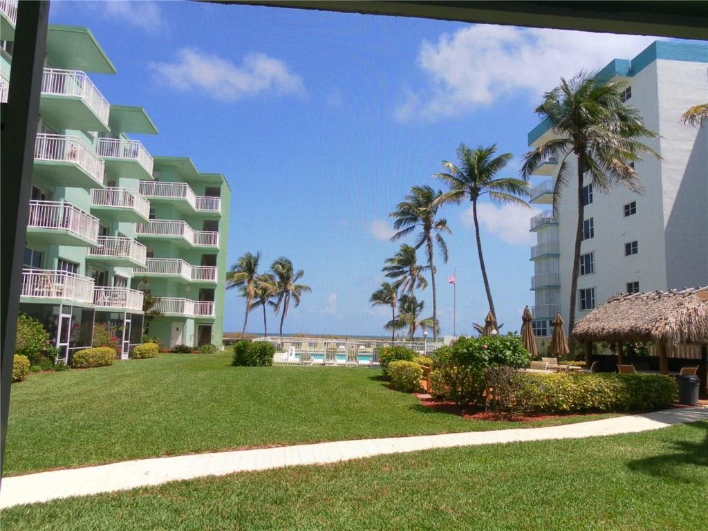 Can you say convenient? Always wanted to own a home on the beach? Look no further! This 2/2 is light & bright & you can walk right out your back door to the swimming pool, tropical tiki hut & sandy beach. No elevators to deal with, just grab your beach bag & GO! Updated w/ new central air being installed July 2016. Clean, white plantation shutters inside for privacy, stack washer/dryer + private screened patio to relax & take in the fresh ocean air. Complex has storage, heated pool & sec. entry.