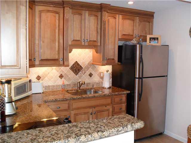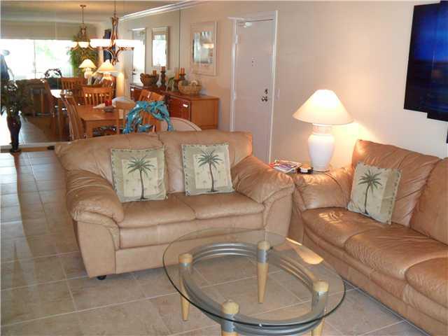 Totally redone kitchen and bathrooms. Granite and tumbled marble. Overlooks the pool and tennis courts, great location. Fully furnished. Seller will take some personal things. Hurricane windows in the bedrooms and hurricane shutters around the patio.