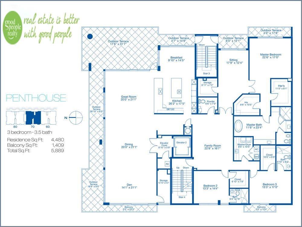 Spectacular new construction penthouse features 4,480sqft living area, with 1,409sqft outdoor terrace. Panoramic water views and downtown skyline from either side of your wraparound balcony. Magnificent open floorplan w/ 11ft ceiling. Gourmet Kitchen w/ I talian Cabinetry w/ Wolf/Sub-Zero top of the line appliances. Semi-private elevator leading to foyer entry. Hurricane impact windows/doors. Deeded 50 foot boat slip. Boutique building w/ only 22 units, the lifestyle of luxury and privacy you deserve.