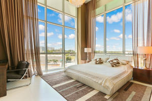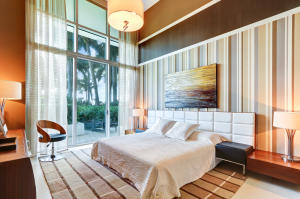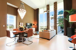 Unique Residence with Soaring 17' ceilings and a feeling of grandeur as you enter! Residence features 2 bedrooms and 2 bathrooms and comes fully designer furnished. The master bedroom is spectacular SW corner of the unit. Extra large garden patio area adjoining the huge 5-star resort luxury pool. Southwest corner Unit is impeccably furnished on the amenity level. Steps to the tropical resort infinity-edge pool as well as the state-of-the-art fitness center with his and hers spa and saunas. Spectacular high ceilings, gorgeous lighting fixtures and decor create feeling of grandeur. Must see impressive and unique designer unit. Same level as News Cafe, Club Room and bar, Billiard room, movie theater, library wine vault , tennis courts, and more...