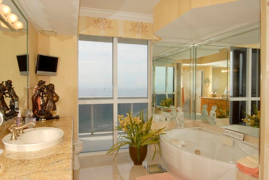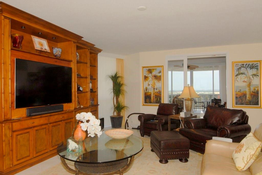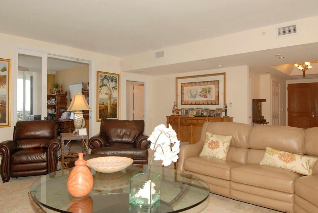 Double corner with Southeast Exposure. Panoramic views of coastline, tropical pool area , Ocean, city and tennis courts.. 3rd bedroom used as a den with french door entry. open kitchen. private elevator. Resort like complex w. tennis, café, concierge, private beach pavilion, pools, spas, pet park. 2 pets, any size OK
