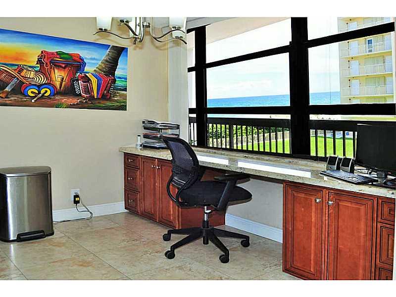 Beautifully renovated 1600+ SF condo with wide open floor plan. The kitchen is all new with gorgeous granite, stainless steel appliances and high quality cabinetry. Extra 1/2 bathroom + large private laundry rm. 2 Balconies with tremendous ocean views. Master and guest bedrooms have huge walk in closets. Brand new central a/c and gorgeous neutral tile thru out. 1-Year Warranty included for the buyer. Beautiful Furniture is negotiable. Garage parking w/ additional storage and secured lobby.