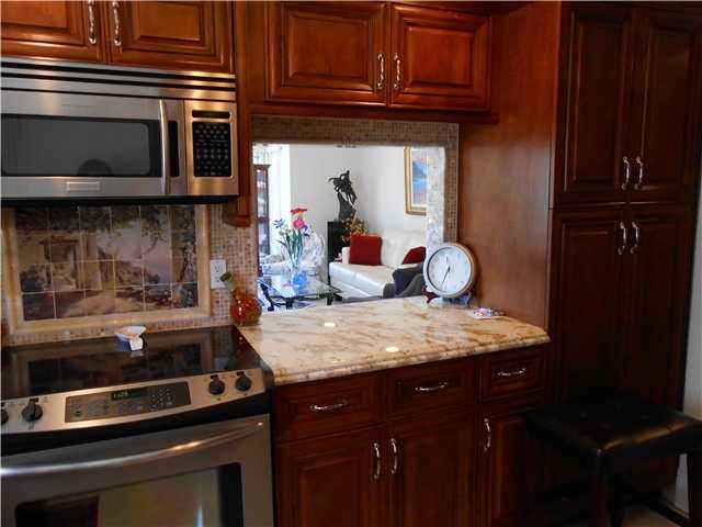 Beautifully remodeled 2BD/2BA southeast facing corner unit condo. Small boutique building in the Town of Lauderdale by the Sea. No expenses spared in this totally remodeled unit. Upscale custom wood kitchen cabinets with granite counters, handcrafted t ile backsplash and stainless appliances. Master Bath boasts granite counters and custom tile shower with dual showerheads and seating area. New large, bright ceramic flooring throughout the unit. Hurricane Impact Windows. Built in sound system.
