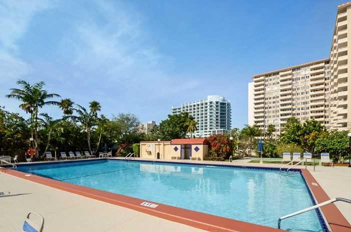 Gorgeous remodel with updated open kitchen and bath! This apartment boasts the best pool and garden view in Coral Ridge Towers. Other features iclude a new central A/C, porcelain tile floors, plus hurricane impact windows and french door. The amenities in clude a beautiful 30 x 60 heated pool and a brand new gym. Just one block from the Water Taxi. This financially secure, well run building is located on the Galt Mile, just across the street from Fort Lauderdale Beach. Live like you're on vacation!