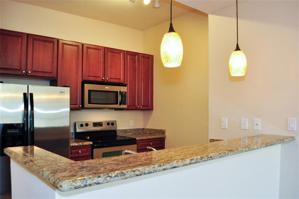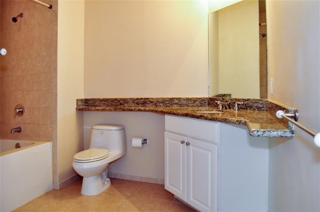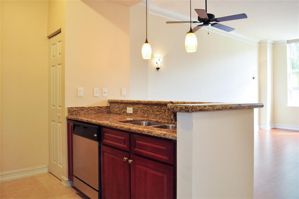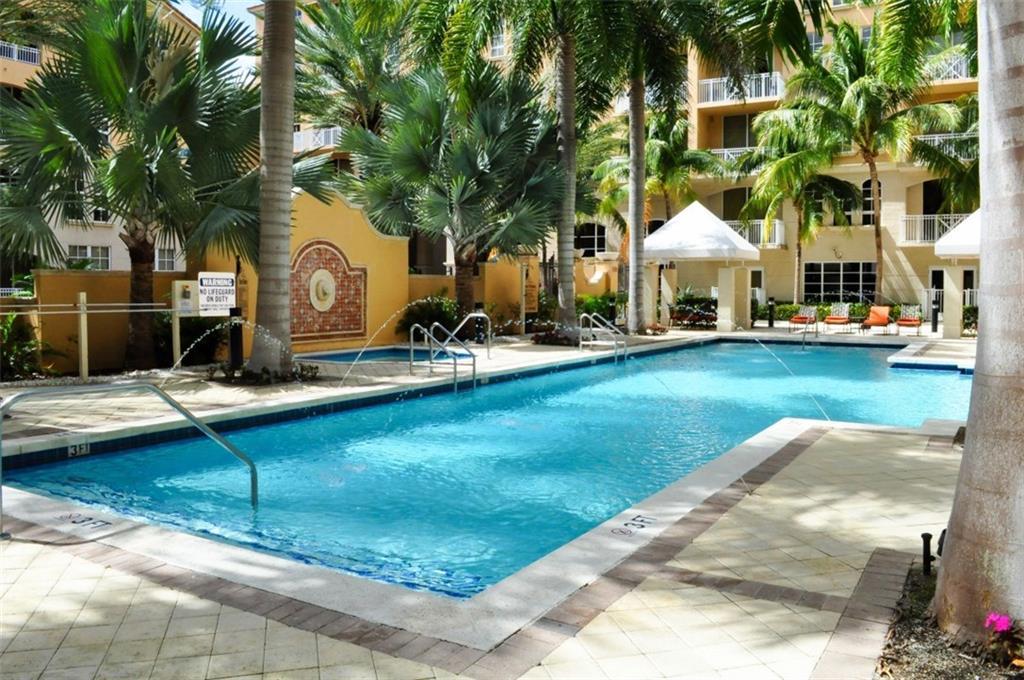 Spacious condo overlooks the pool and allows natural sunlight to shine through. Kitchen has granite counter tops and stainless steel appliances. This beautiful home features 10ft ceilings , 7 inch crown molding, 5 inch base molding and laminate wood throughout. Oversized bathroom with Roman tub and tile base. Decorative light fixtures and ample closets. Huge private storage valued at $5,000 will convey with the property. Excellent location, scenic jogging trails and walking distance to cafes and shops.