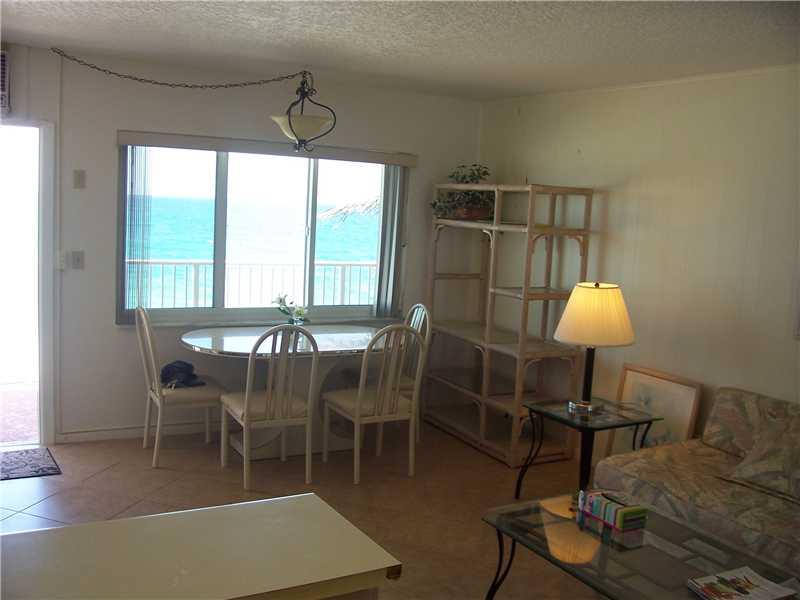 Great opportunity to own DIRECT OCEANFRONT STUDIO!!!Beware of others claiming to be Oceanfront.....this is DIRECT. Spectacular views!! Amazing sunrises....Impact Bay Window...New front Door...Newer Appliances....Make this your oceanfront hideaway!!!Libera l rental policy...electric and water included in maintenance....extra storage in dressing area...Heated pool, recreation room....storage locker,1 designated parking space....