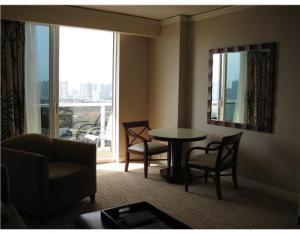 OCEANFRONT LUXURY CONDOTEL JUNIOR SUITE WITH FANTASTIC INTRACOSTAL & CITY VIEWS.RENT UNIT AND VACATION ENJOYING BEATIFUL BEACH AND POOLS,SPA,GYM,EXCELLENT RESTAURANTS,HOTEL LOUNGE. FURNISHED UNIT HAS A KICHENETTE,WASHER & DRYER. RECENTLY REMODELED. The Junior Suite has one big room with a King bed as well as a seating and desk area. There is also another sofa with a pull out bed that sleeps two. A kitchenette with refrigerator, micro and coffee maker and washer and dryer are in the foyer.