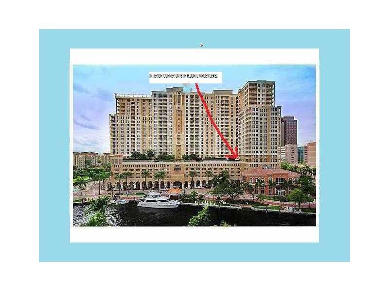 Buy now with TENANT INCOME til 6/16! Downtown WATERFRONT luxury living. SPLIT bedroom OPEN fl plan has PRIVATE PATIO with GAZEBO. L-shape provides 2 master bedrooms, each has impact glass sliders open to patio. Unit located on 6th fl Meditation Garden lev el w/fountains & hot tub. Excellent for entertaining! Ceramic tiled living area w/carpet in bedrooms. Popular bldg has 5-star amenities! Walk to Las Olas, Broward Center, & restaurants. Pet friendly, 24/7 security, & garage parking.