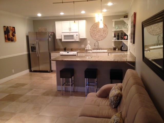 COMPLETELY RENOVATED FIRST FLOOR CORNER UNIT! New, spacious kitchen & appliances, travertine floors throughout, renovated bathrooms, custom plantation shutters in all windows & so much more. A MUST SEE! This community is conveniently located within a residential neighborhood within walking distance to grocery, Farmer's Mkt., shopping, hospitals, parks, library, restaurants, and public transportation. The heated pool is newly renovated and pool cabanas are available for rent. Tastefully semi-furnished.