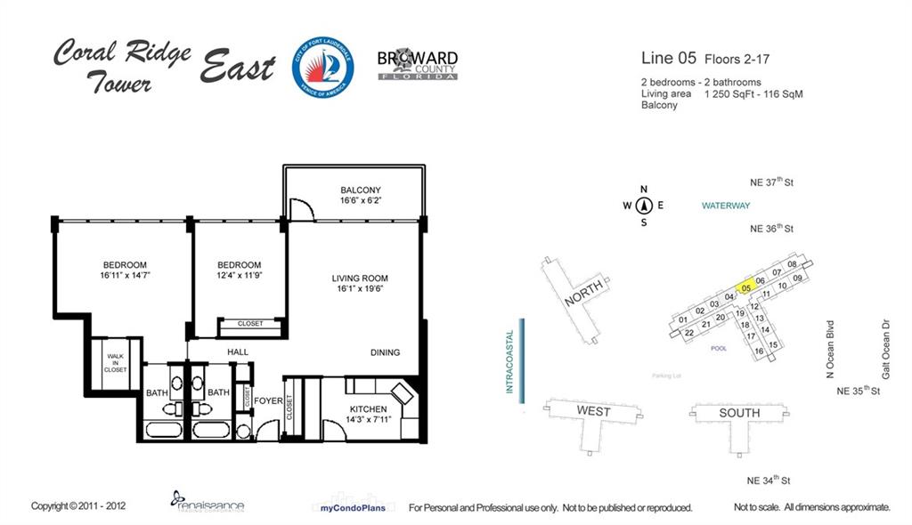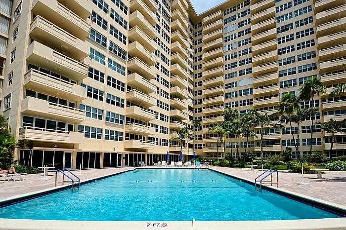Best value on Galt Ocean Mile! Large two bedroom with central A/C and Hurricane Impact Windows. Stunning updated Lobby, hallway renovation project just completed. Resort-style pool and Clubhouse located on the Intracoastal Waterway. Convenient dockage for pick-ups and drop-offs at your back door. Water Taxi is one block away and the beach just across the street. This is a financially secure, well-managed building........Make it your home! Association says 55 plus.