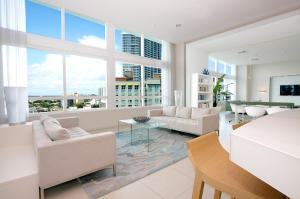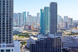 Remarkable views from this 43rd floor apartment! Soar above Miami with these background views. 180 degrees - from Miami Beach, downtown, Key Biscayne to Miami Airport. Comfortable 2 bedroom unit in a dynamic, modern building with great location. Unit recently upgraded with high-end porcelain floors. Quick access to all areas in Miami. Building features great amenities, such as two pools, fully equipped gym, movie theather, and an awesome community/ party room. Tenant occupied, please provide 24 hr notice for showings.