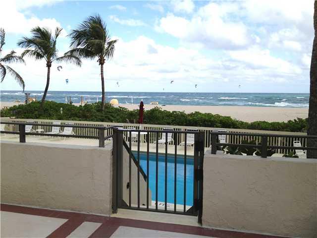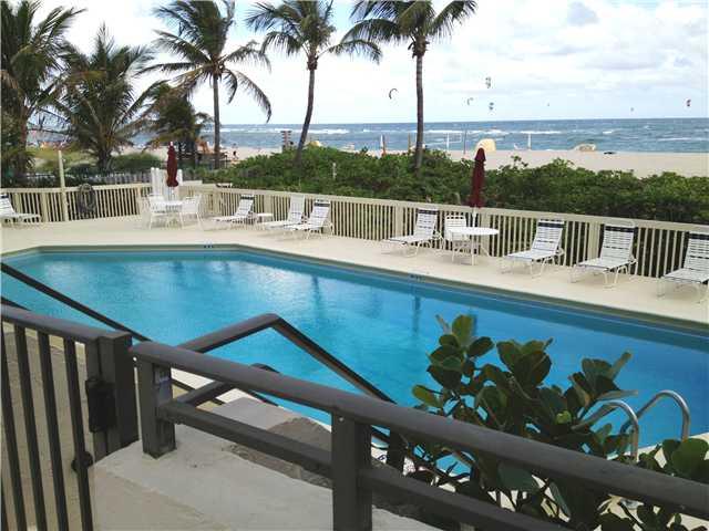 Beautifully & totally remodeled (2008), corner unit. Granite countertops in kitchen & baths. Entertainment center/murphy bed in living room for extra sleeping space. Impact windows. View of ocean, intracoastal & city. Building on the sand. Split bedroom plan. Formal dining room could be used as den, office or make a 3rd bedroom. Breakfast area off living room & kitchen. Laundry/storage room in unit. Beachfront pool. Fitness center, sauna, community room w/kitchen facilities. Small pet welcome..