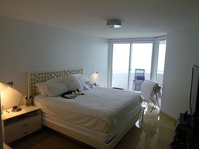 DIRECT Oceanfront unit with STUNNING views of Atlantic & Downtown Miami. Recently renovated with $110K+ in upgrades. Featuring RARE Spanish Marble throughout, Modern Open floor-plan Kitchen, European-style cabinetry & High End White Quartz counter-top. Ga ze at the sunrise or sunset from either 1 of the 2 balconies, or from the living area through the Floor-to-Ceiling glass rotunda. 24 security & concierge, Valet, gym, sauna, and private beach entrance. UNIT $100K BELOW MARKET. Buyer pays assessment bal.