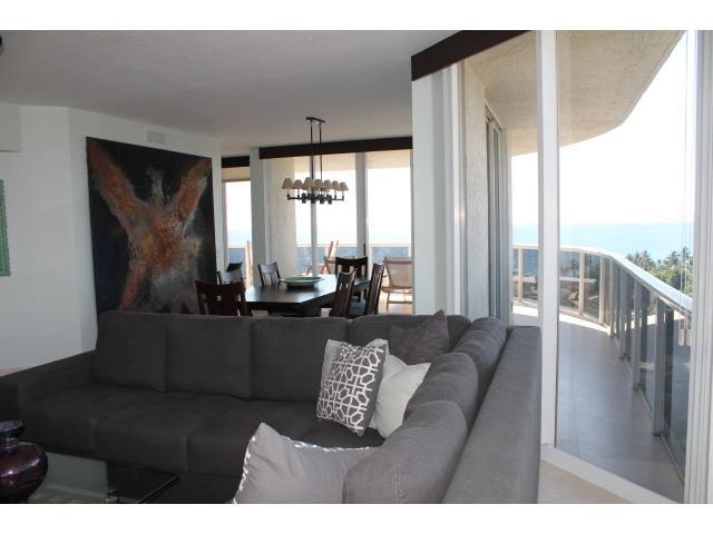 Recently updated, Den can be a third bedroom. Wetbar, custom entry doors, low voltage lighting, vessel sink in half bath, private elevator entry. Spectacular 270 degree panaramic views includes ocean and intercoastal.