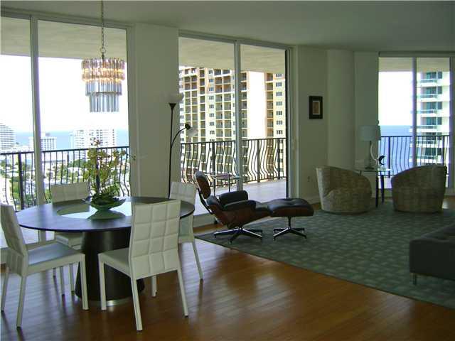 Spectacular NE corner residence w/incredible views of Ocean & Intracoastal.Direct elevator access from lobby & garage into private foyer of the residence. Beautiful bamboo floors. 2 Bedroom plus Den which could be used as 3rd bedroom! Huge 1140 sqft. wrap around terrace w/custom built bamboo bar great for entertaining.Building offers world class amenities: Pool, Spa, Billiards, Steam room, Sauna, Fitness room open 24hr & more.2 parking spaces incl. Walk to shops & restaurants, Las Olas Marina & water taxi!