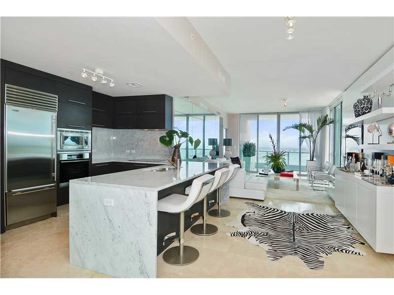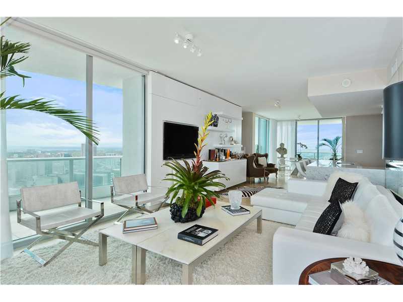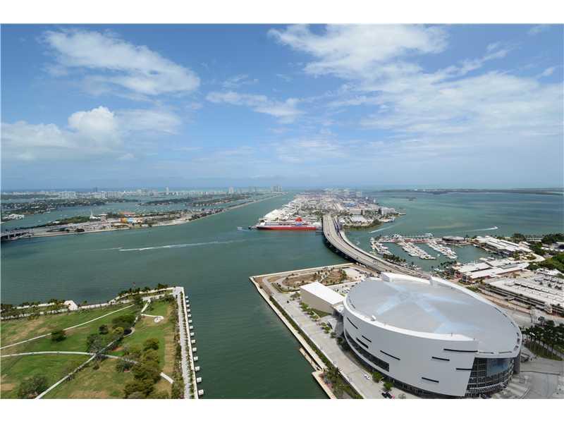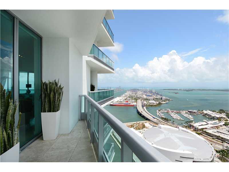 Elegant & sophisticated 50th floor corner unit. Large terraces. Panoramic views of Biscayne Bay, Ocean, Miami Bch & more. Priv. elevator foyer. Beautiful built-ins. Travertine marble floors. Floor to ceiling windows. Gourmet kitchen. Marble counters/Mosa ic backsplash. Stainless appliances. Subzero refrigerator, Miele oven, cooktop, dishwasher & microwave. Currently 2BR/3.5BA. Sep. laundry room. Easily converted to a 3BR. Full amenity luxury bldg. Pool, Spa, Clubroom, gym, garage parking. 24 hr. security.