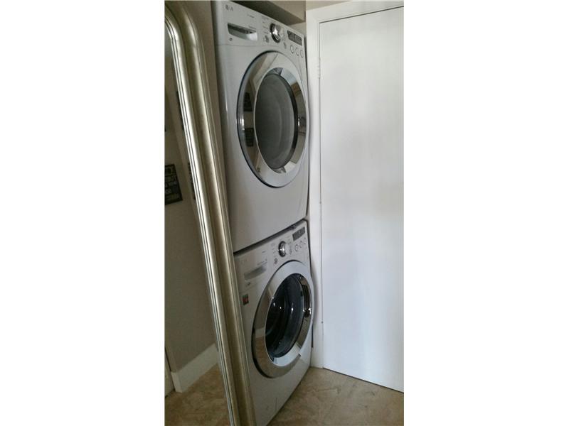 Sleek, stylish, 2 story, 1BR/1.5 bath apartment overlooking the pool, and bay. Largest 1 BR in complex, 957 square feet. 20 foot ceilings in living room, custom lighting, marble floors, stainless appliances, granite counters, upgraded laundry with stainle ss package. Gorgeous, well maintained unit.