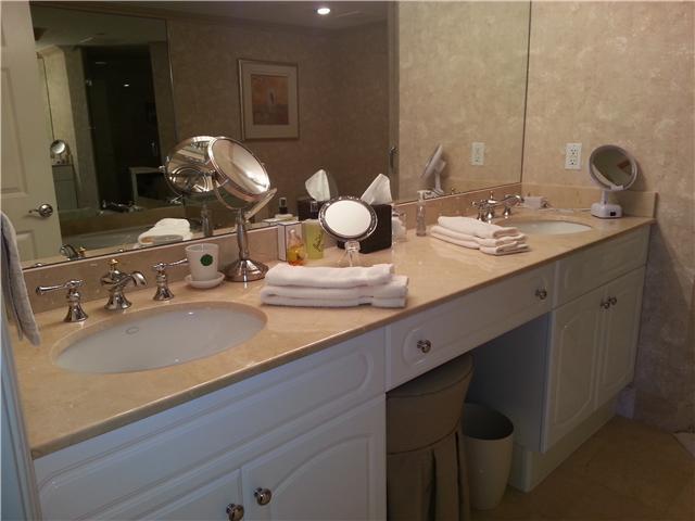 SE corner unit with large terrace that has direct ocean views. Former model unit. Comes completely furnished with high end Hickory White furniture. Unit has crown moulding, 24 inch marble tile floors, floor to ceiling windows,master bedroom with direct oc ean views, and custom paint and wall paper. Owners purchased unit from the builder and has only been lightly used ever since. Building is pet friendly. Unit comes with 2 underground side by side parking spaces and a wine locker.
