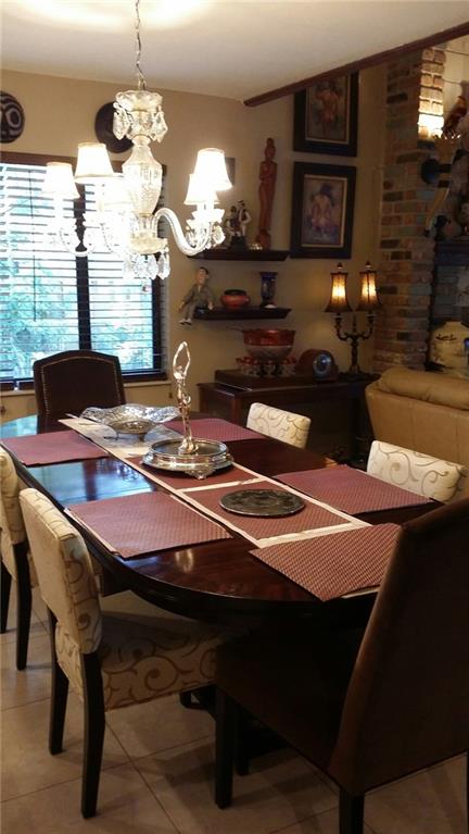 Spacious 2/2 with open floor plan.vaulted beamed ceilings and beautiful brick fireplace in the living room. Completely renovated from top to bottom! 2015 new roof, renovated kitchen and bathrooms..the list goes on. Master bedroom has a newly renovated ensuite bathroom. Sliding glass doors leading to the brick pavers in privately fenced tranquil back garden with built-in-barbeque area perfect for Florida entertaining. Steps from the community park. Storage shed is included.