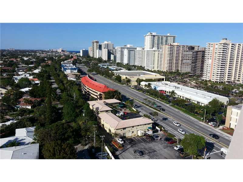 BEST VIEW IN CORAL RIDGE TOWERS. Penthouse with Panoramic views of the Intracoastal and ocean. Updated with cherry wood floors, updated kitchen with newer appliances and granite counters, impact windows, one year old central air, custom window treatments in living and bedroom. Centrally located building with its own beach club for your private party. Walking distance to ocean, restaurants and shops. Furniture is negotiable.
