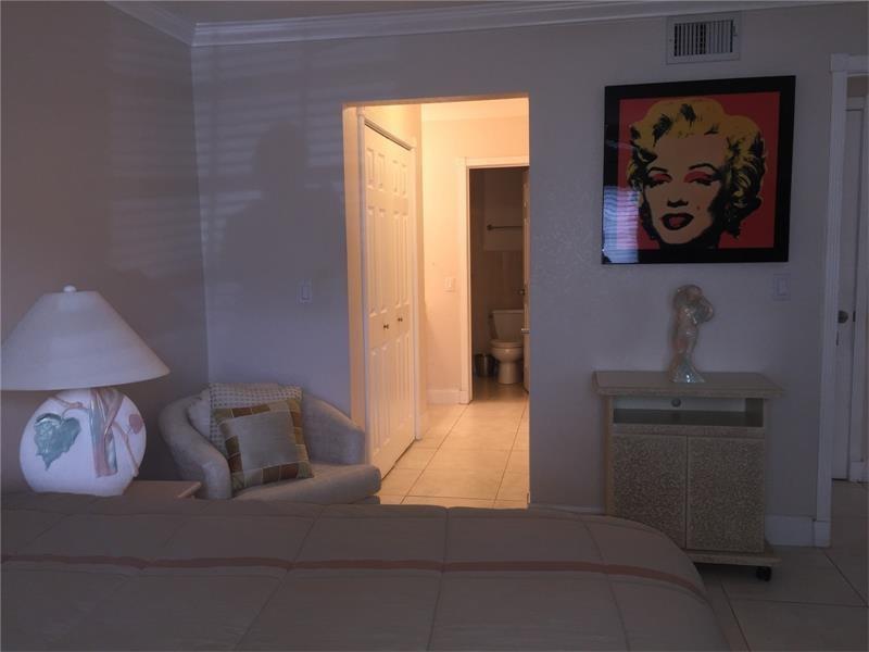Tropical Oasis in this updated 1/1.5 spacious condo in east Ft. Lauderdale. Neutral colors and lots of light throughout unit. Kitchen has granite countertops, newer appliances and tons of cabinet space. Condo is a first floor and corner unit with closets galore! Bay Colony is a quiet gated community located on the intracoastal waterways and only 1.5 miles from beach. Community includes 4 heated pools, 24 hr security, community laundry, fitness room, recreation room, tennis courts, dockage when available.