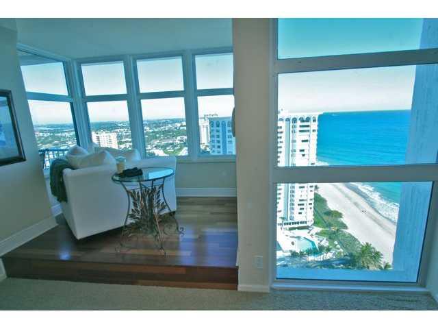 REDUCED $30,000! AWESOME 27th floor unit with ocean, Intracoastal & city views. Eat in kitchen w/high end Aster Cucine EUROPEAN CABINETS. Built in double door WINE BAR for elegant entertaining. Full size Maytag WASHER/DRYER in unit. ENDLESS CLOSETS. DOU BLE SINKS in Master Bath. Elevated alcove in master BR -- an enticing area for ocean-viewing,reading, relaxing.Wonderful high tech RECESSED MOOD LIGHTING for romantic evenings. No expense spared in this remodel. TV & speakers not included in sale.