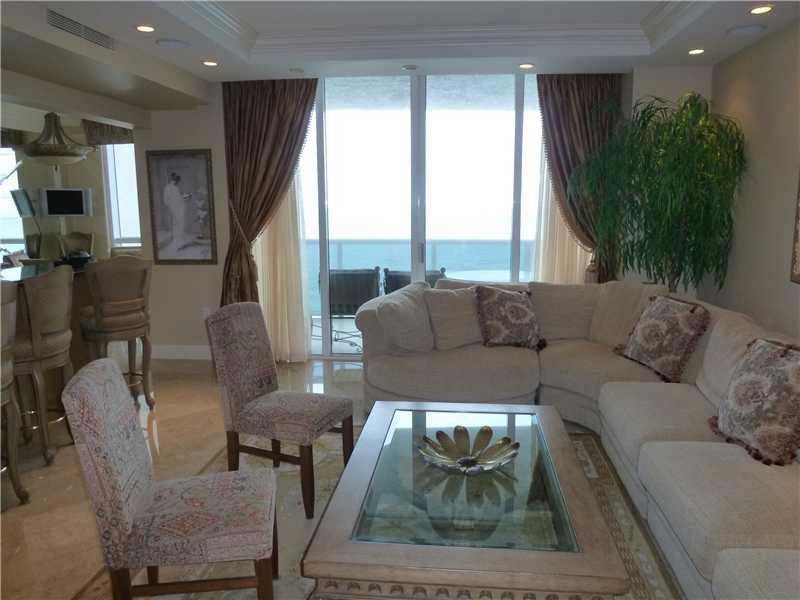 LUXURY HIGHRISE BUILDING DIRECTLY ON THE BEACH. 3 EN SUITE BEDROOMS, HIS & HER MASTER BA. OPEN KITCHEN WITH BREAKFAST AREA OVERLOOKING THE POOL AND BEACH. MARBLE FLOORS AND MARBLE BATHS. DEN WITH CUSTOM BUILT-INS + FIRE PL. HIGH QUALITY DECORATOR FINISH ES THROUGH OUT.GENEROUS CLOSET AND STORAGE SPACE. UNIT FLOWS THROUGH EAST TO WEST WITH 2 HUGE BALCONIES ONE FACING THE OCEAN THE OTHER THE CITY AND INTRACOASTAL. SEMI PRIVATE ELEVATORS, 2 GARAGE PARKG SPACES.BEACH SIDE POOL DECK,CABANAS, SPA AND BBQS.
