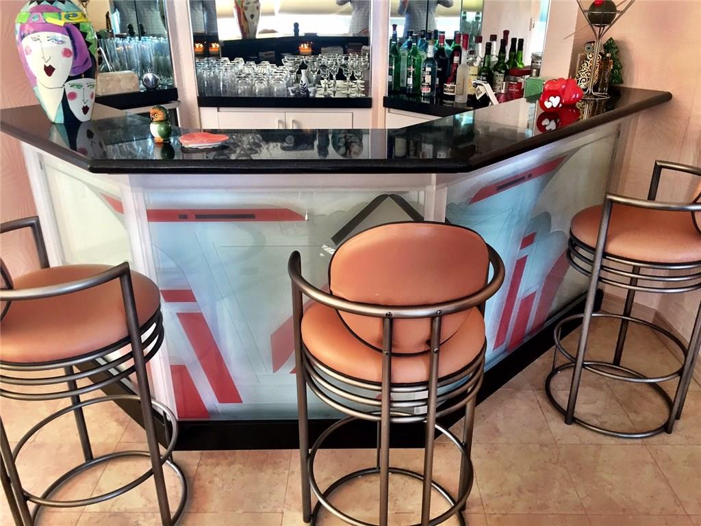 Direct Ocean and Intracoastal views can be enjoyed in this fabulous art deco condo featuring 3 large bedrooms and 3 full baths. Living room has spectacular ocean views. The bar area features custom etched ceiling to floor partitions that are mimicked in the back-lit glass custom bar. Artistic details throughout this entire condo are incredible. Original owners have maintained the unit to perfection!